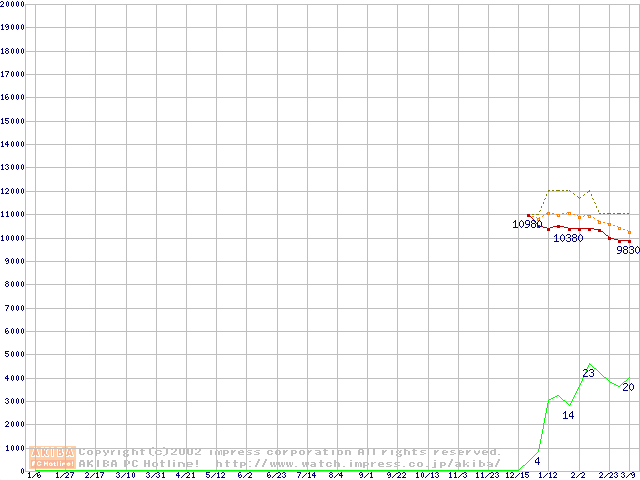 DiamondMax D540X (5400rpm,UltraATA/100,40GB/Platter,流体軸受)の最安値推移