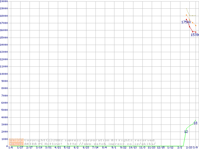 HDD主要製品(最安値1万5千円~2万円未満)の最安値推移