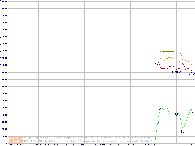 Socket A (Morgan,PGA,FSB 200MHz,L2 64KB)の最安値推移