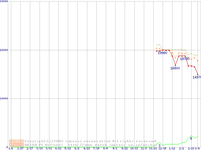 MHNシリーズ (9.5mm,4200rpm,UltraATA/100,2MB)の最安値推移