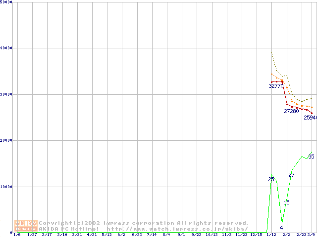 Pentium 4 1.80A GHz リテールパッケージの価格推移