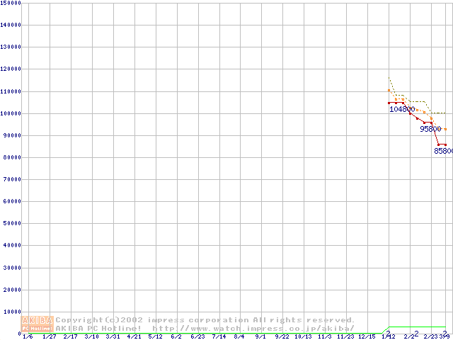 Socket 603 (micro-PGA,L2 512KB,Hyper-Threading,Prestonia)の最安値推移