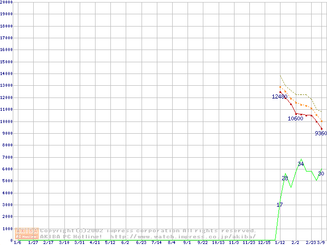 Celeron 1.10A GHz FC-PGA2 リテールパッケージの価格推移