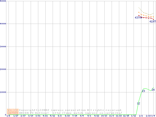 Socket 370 (FC-PGA2,FSB 133MHz,L2 512KB)の最安値推移