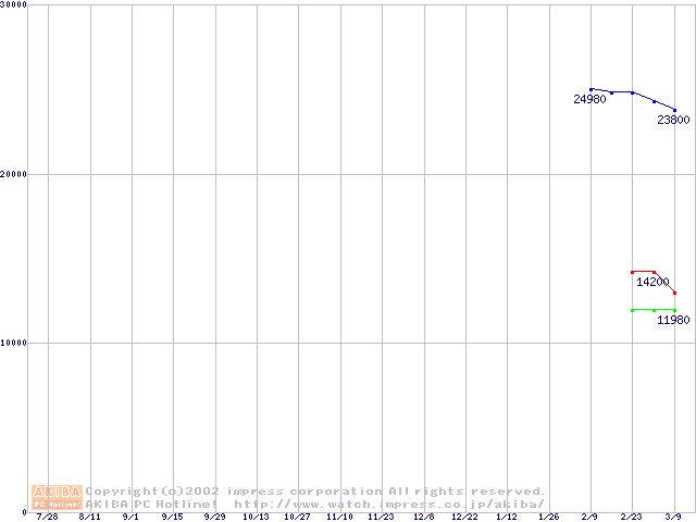 | [↓次グラフ]: | MHNシリーズ (9.5mm,4200rpm,UltraATA/100,2MB)の最安値推移 |