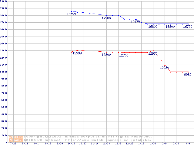 | [↓次グラフ]: | MHRシリーズ (9.5mm,4200rpm,UltraATA/100,2MB,20GB/プラッタ,流体軸受)の最安値推移 |