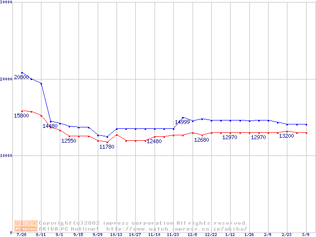 | [↓次グラフ]: | Socket A (Thunderbird,PGA,FSB 200MHz,L2 256KB)の最安値推移 |