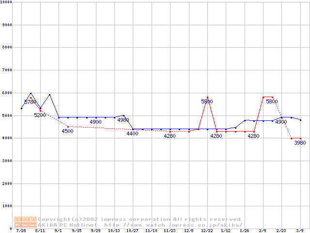 | [↓次グラフ]: | Socket A (Palomino,OPGA,FSB 266MHz,L2 256KB)の最安値推移 |