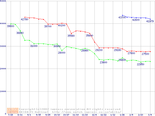 | [↓次グラフ]: | Socket 370 (FC-PGA2,FSB 133MHz,L2 256KB)の最安値推移 |