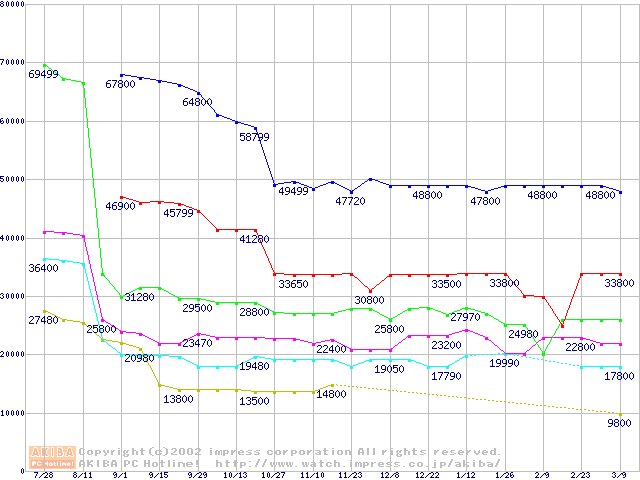 | [↓次グラフ]: | Socket 603 (micro-PGA,L2 512KB,Hyper-Threading,Prestonia)の最安値推移 |