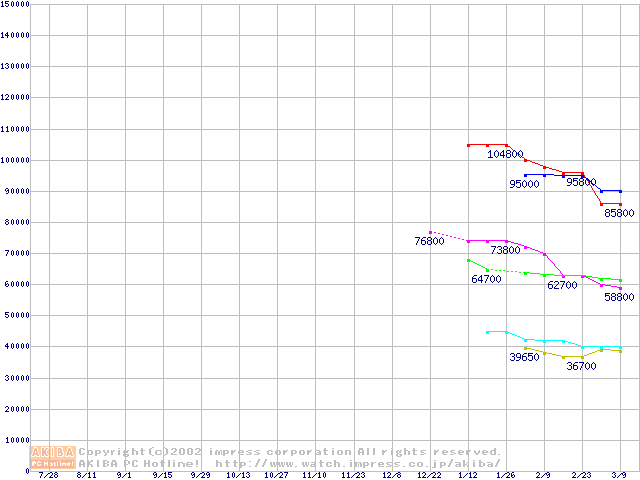 | [↓次グラフ]: | Socket 603 (micro-PGA,L2 256KB,Foster)の最安値推移 |