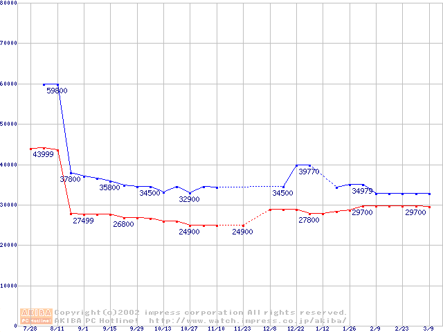 | [↑前グラフ]: | Socket 603 (micro-PGA,L2 512KB,Hyper-Threading,Prestonia)の最安値推移 |