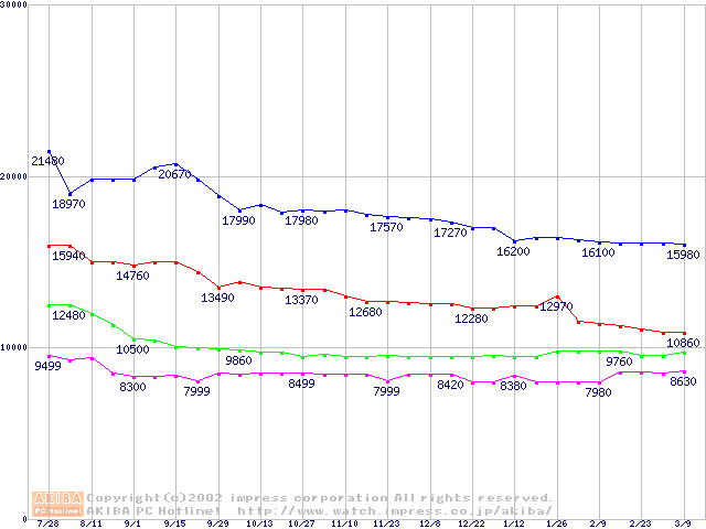 | [↓次グラフ]: | U5 (5400rpm,UltraATA/100 512KB)の最安値推移 |