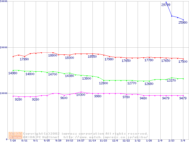 | [↓次グラフ]: | WD Protege (5400rpm,UltraATA/100)の最安値推移 |