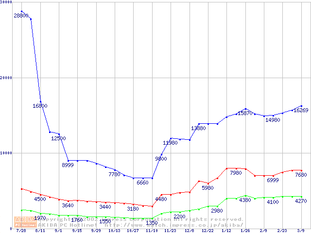 PC2100(DDR266) DDR SDRAM DIMM(CL 2.0)の最安値推移