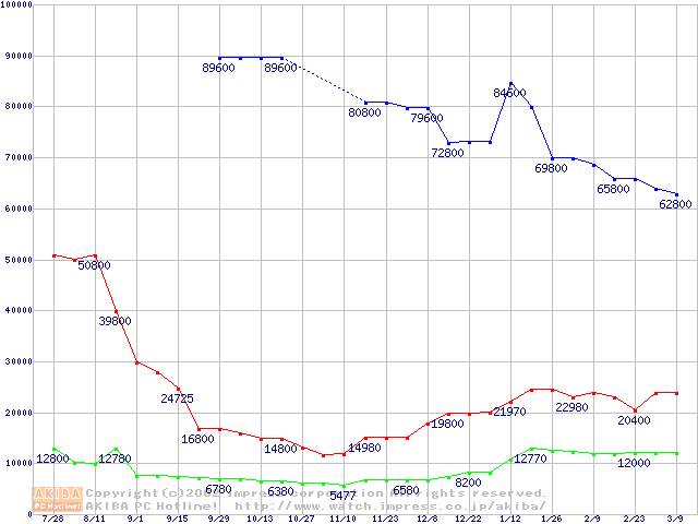 | [↑前グラフ]: | PC2700(DDR333) DDR SDRAM DIMMの最安値推移 |