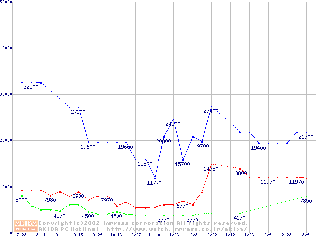 | [↓次グラフ]: | PC133 SDRAM DIMM CasLatency=3の最安値推移 |