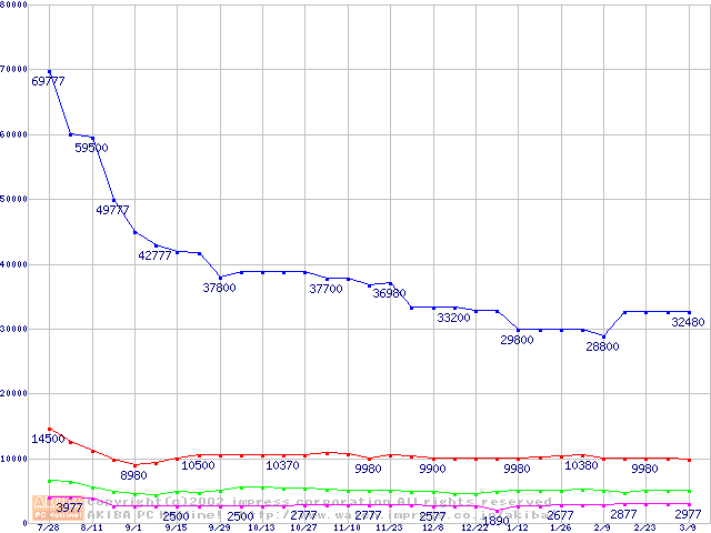 | [↓次グラフ]: | PC800 DRDRAM RIMM ECC対応の最安値推移 |