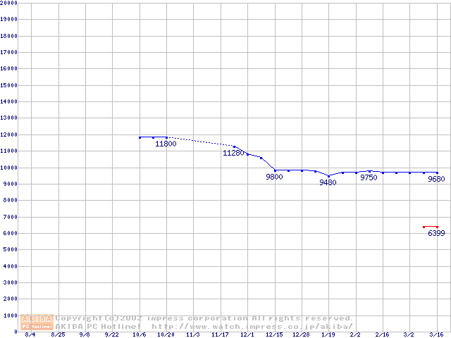 | [↓次グラフ]: | 2.5インチHDD 10GB~20GB未満(9.5mm厚)の最安値推移 |