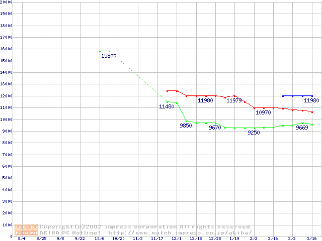 | [↑前グラフ]: | 2.5インチHDD 10GB未満(9.5mm厚)の最安値推移 |