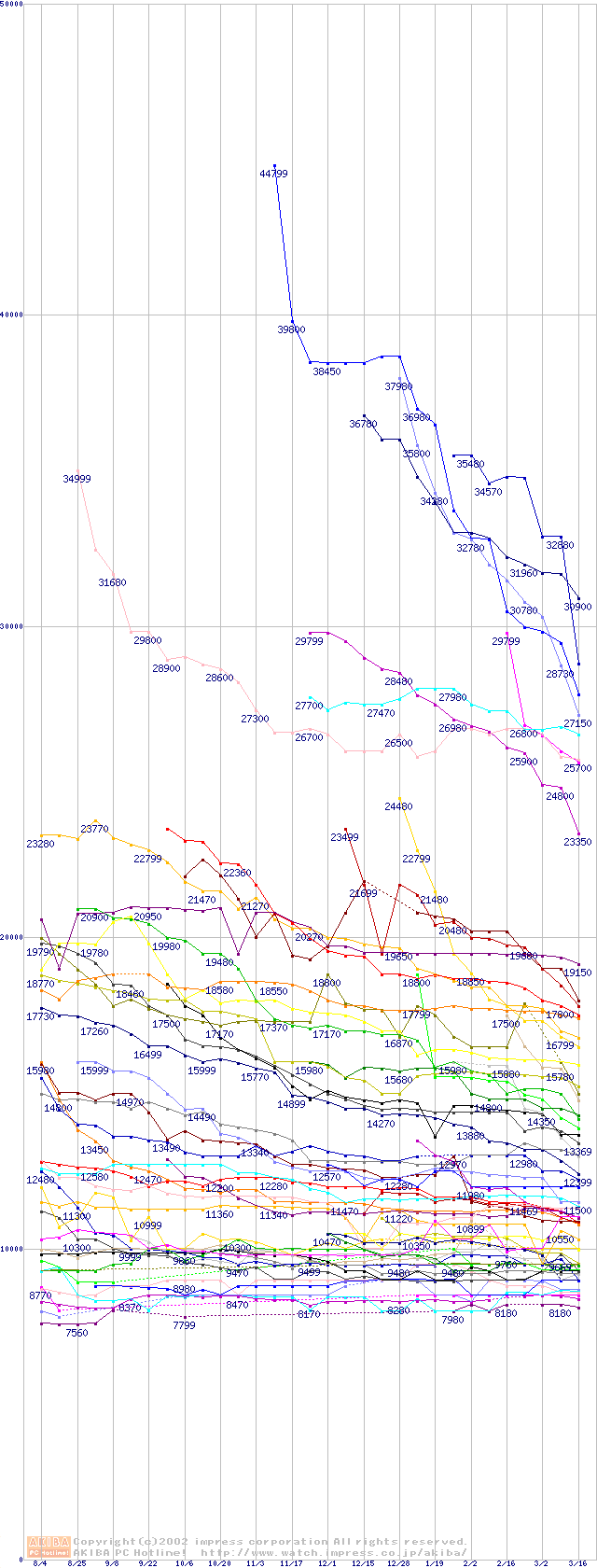 HDD 10GB~20GB未満(5400rpmクラス)の最安値推移