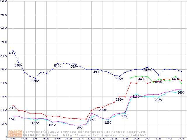 メモリ主要製品の最安値推移