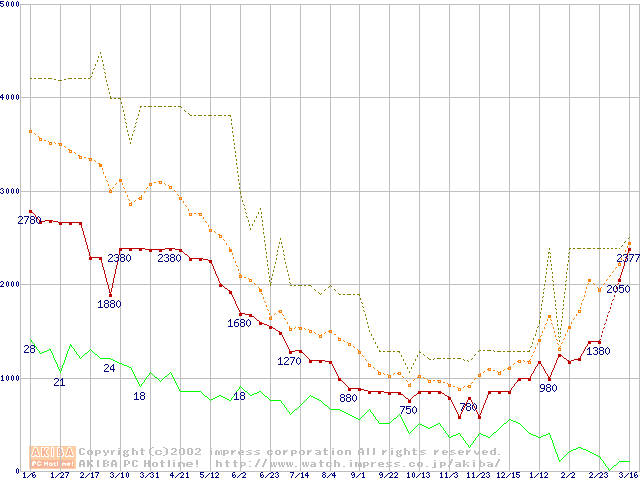 PC133 SDRAM DIMM CasLatency=3の最安値推移