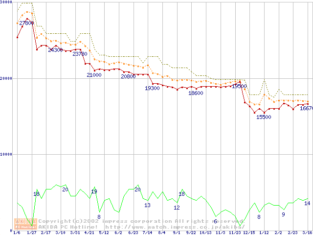 Pentium III 850MHz SECC2 リテールパッケージの価格推移