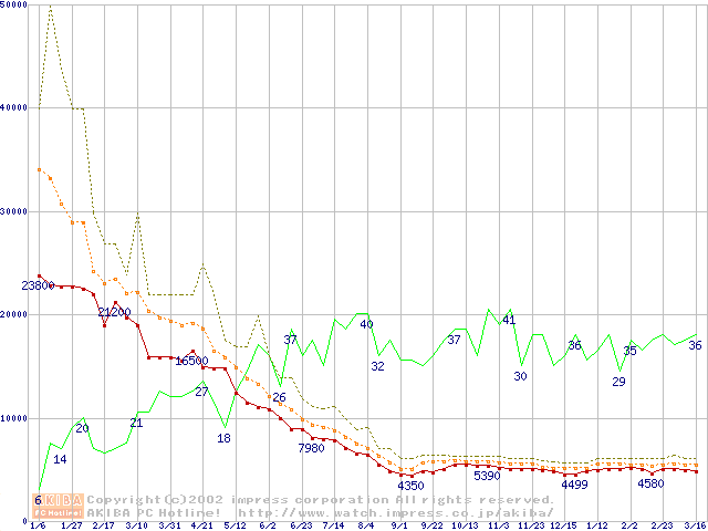 PC800 DRDRAM RIMMの最安値推移