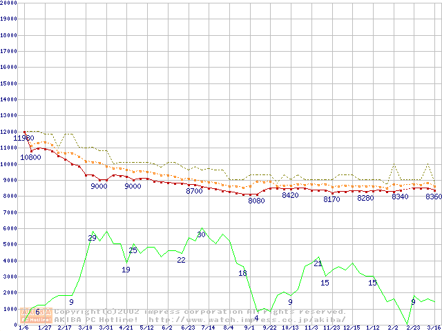 MPG3xxxAT (5400rpm,UltraATA/100)の最安値推移
