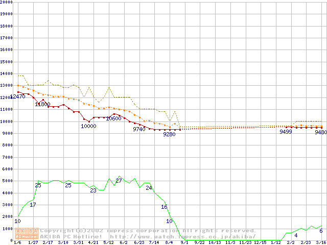 HDD主要製品の最安値推移