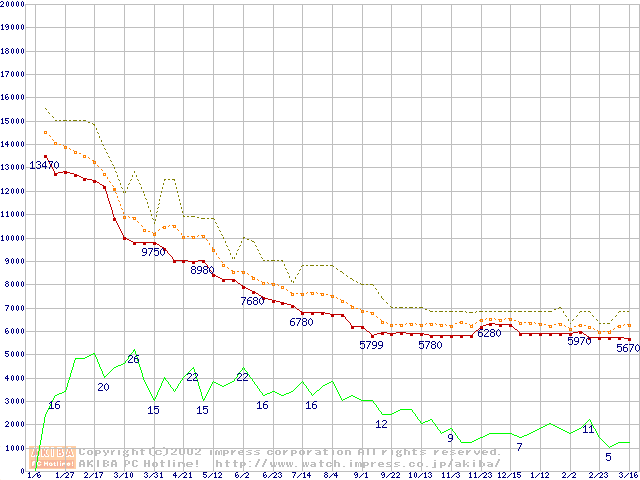 Socket A (Spitfire,PGA,FSB 200MHz,L2 64KB)の最安値推移