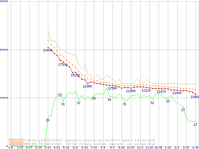 Deskstar 60GXP (7200rpm,UltraATA/100 2MB)の最安値推移