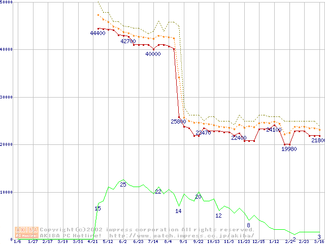 Pentium 4 1.70GHz(423pin)リテールパッケージ(RIMMなし)の価格推移