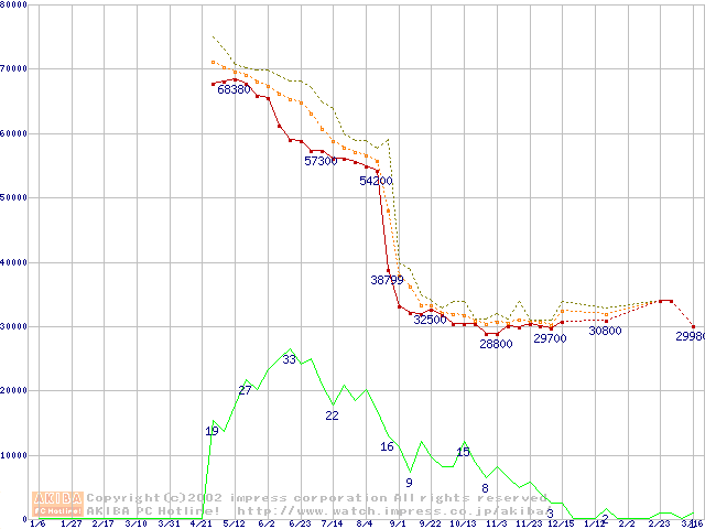 Pentium 4 1.70GHz(423pin)リテールパッケージ(256MB)の価格推移