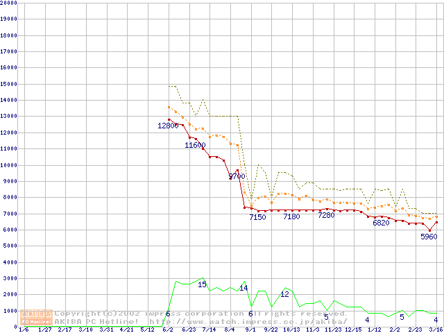 Socket A (Spitfire,PGA,FSB 200MHz,L2 64KB)の最安値推移