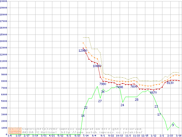 Celeron 900MHz FC-PGA リテールパッケージの価格推移
