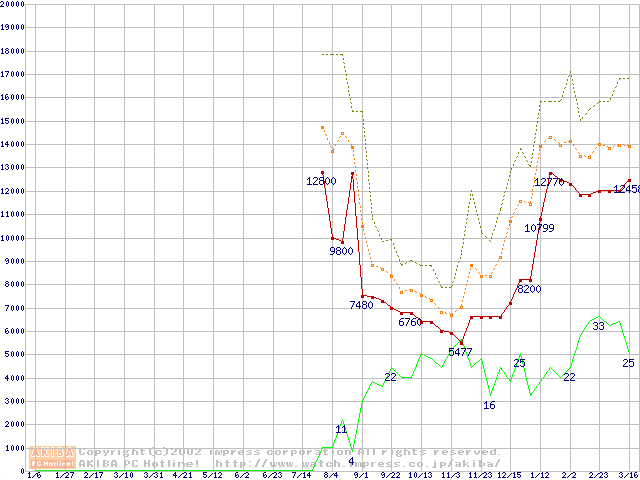 メモリ主要製品の最安値推移