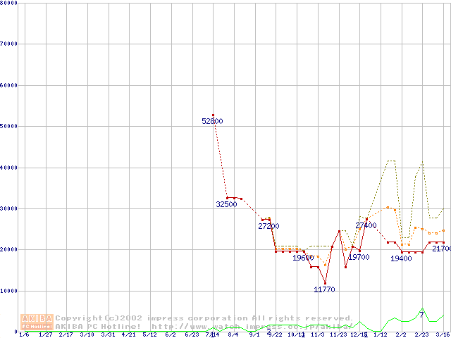 PC2100(DDR266) DDR SDRAM DIMM ECC対応の最安値推移