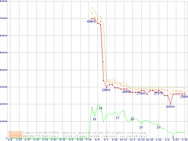 Pentium 4 1.80GHz(423pin)リテールパッケージ(RIMMなし)の価格推移