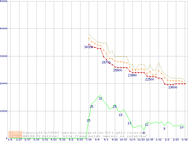 Pentium III 1.13AGHz FC-PGA2 リテールパッケージの価格推移