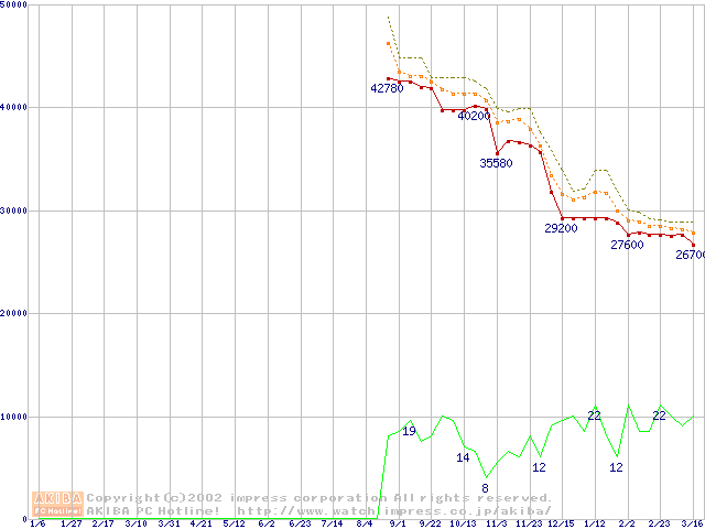Pentium III-S 1.26GHz FC-PGA2 リテールパッケージの価格推移