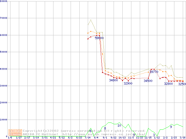Socket 603 (micro-PGA,L2 256KB,Foster)の最安値推移