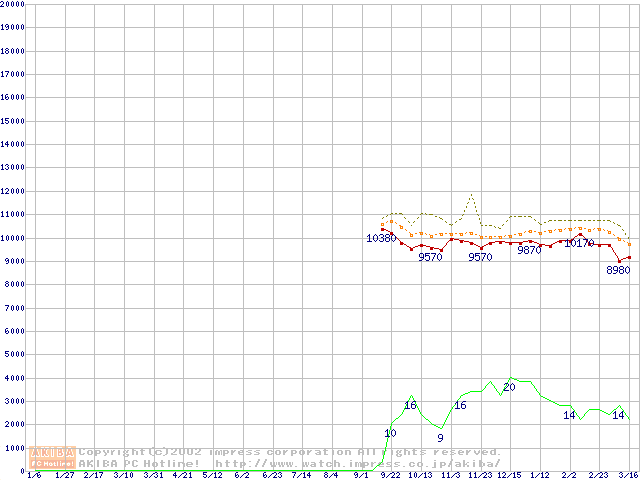 DiamondMax D540X (5400rpm,UltraATA/100,40GB/Platter)の最安値推移