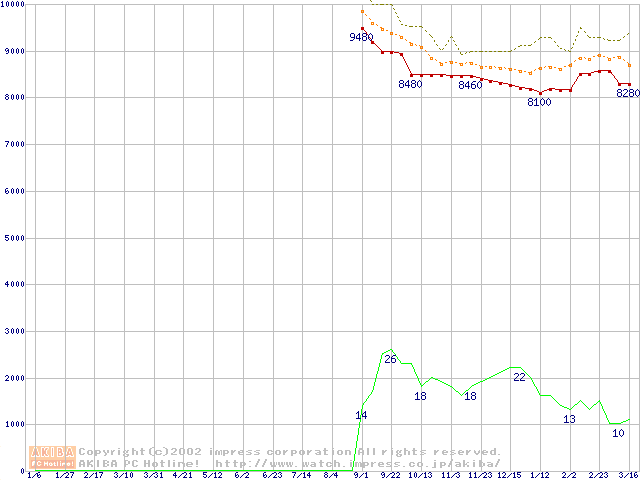 Celeron 950MHz FC-PGA リテールパッケージの価格推移