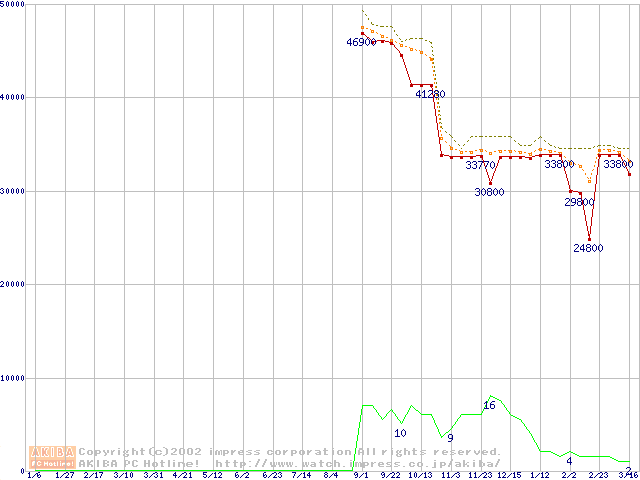 Socket 423 (PGA,L2 256KB)の最安値推移