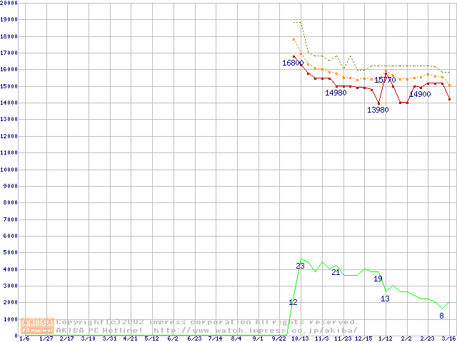 Socket A (Palomino,OPGA,FSB 266MHz,L2 256KB)の最安値推移