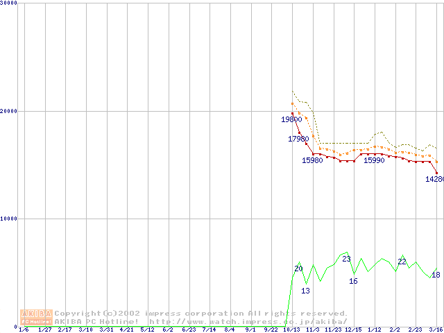 Socket A (Palomino,OPGA,FSB 266MHz,L2 256KB)の最安値推移