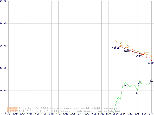 DiamondMax D540X (5400rpm,UltraATA/133,40GB/Platter)の最安値推移