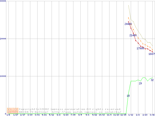 Deskstar 120GXP (7200rpm,UltraATA/100 2MB)の最安値推移